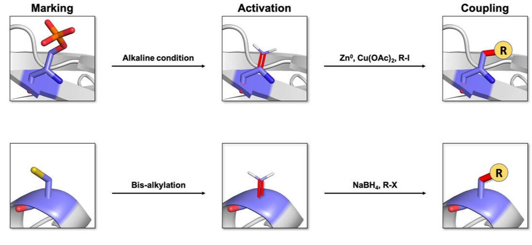 "Marking-Activation-Coupling" approach to attach various functional groups to the protein
